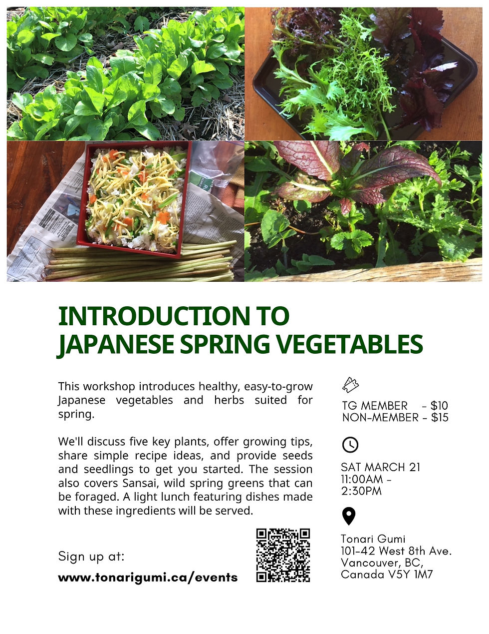 This workshop will introduce healthy, easy-to-grow Japanese vegetables and herbs suited for spring.